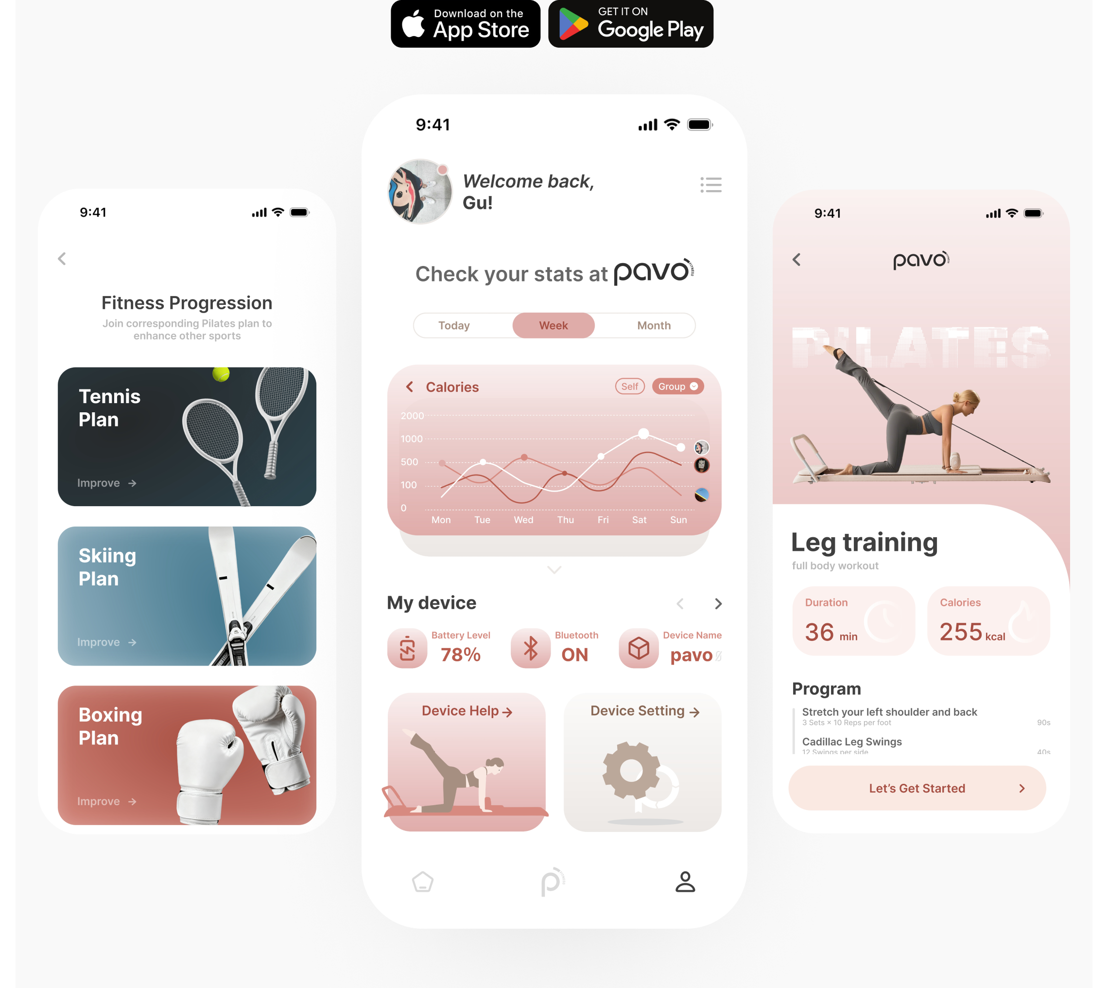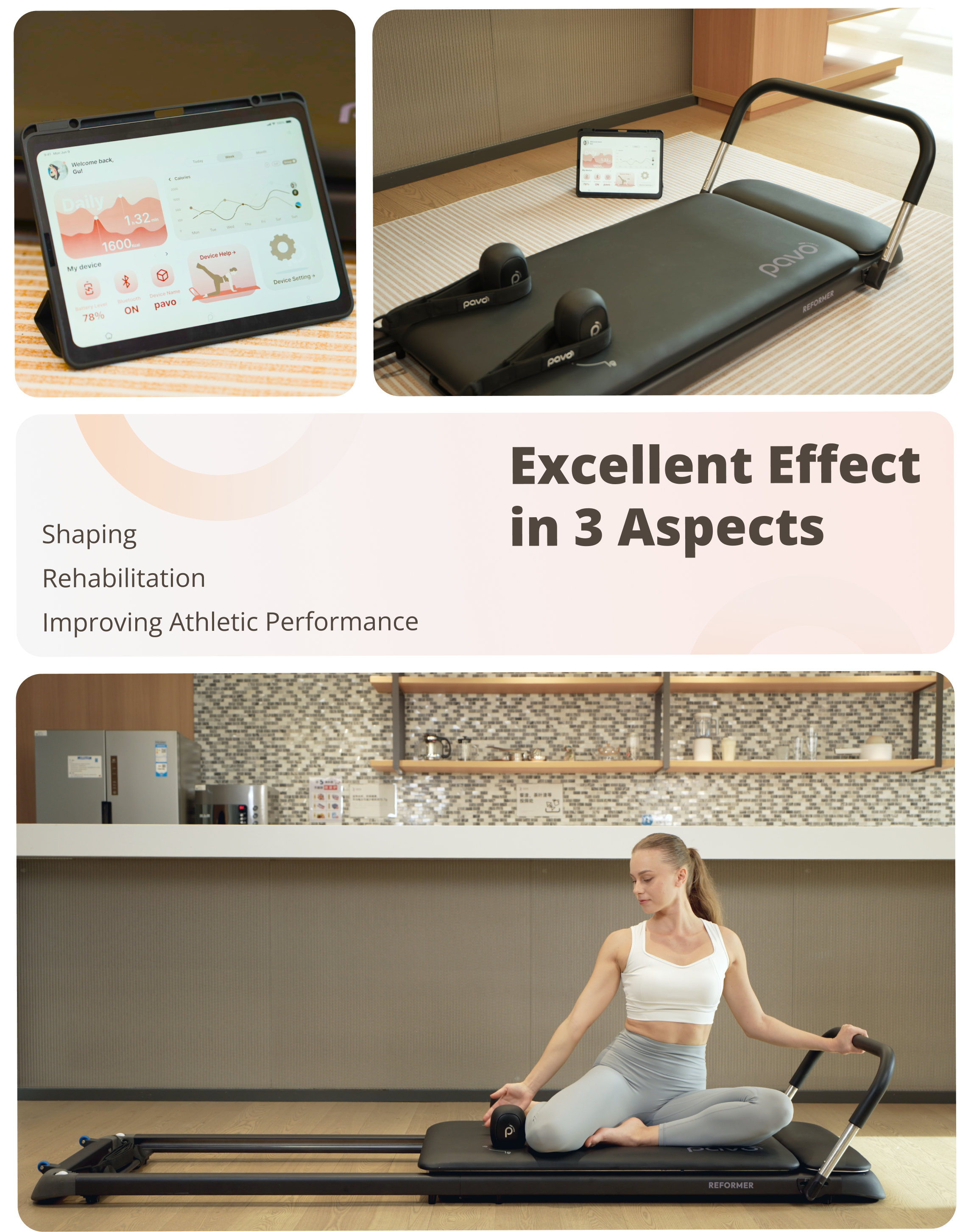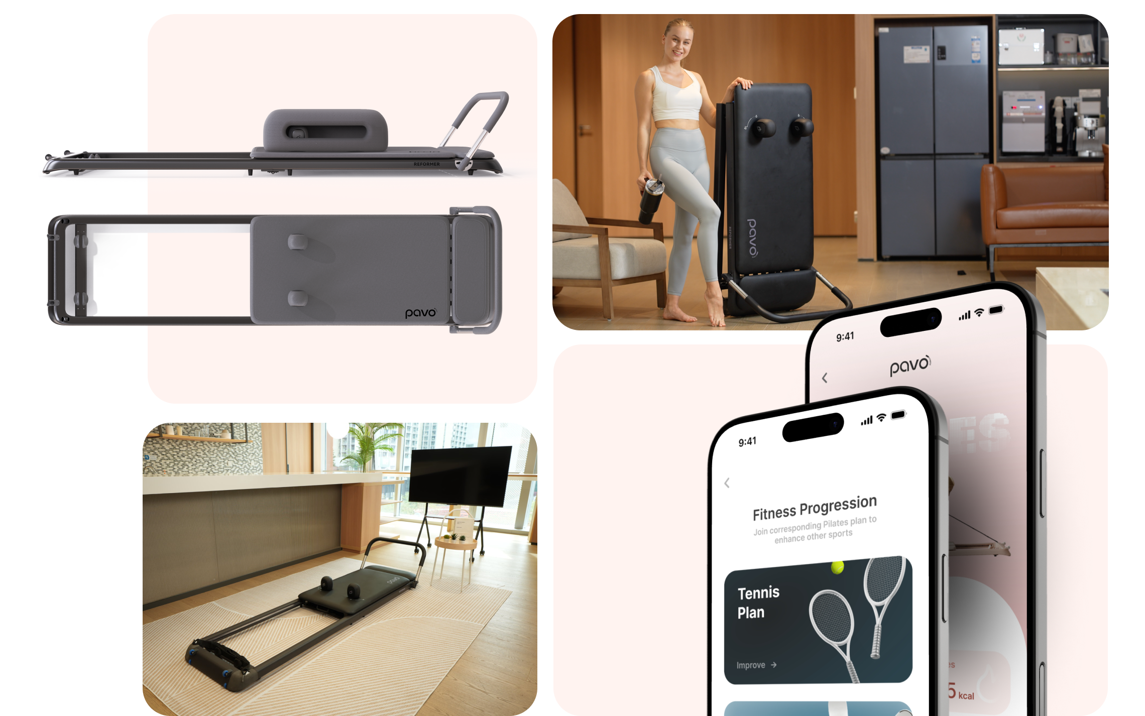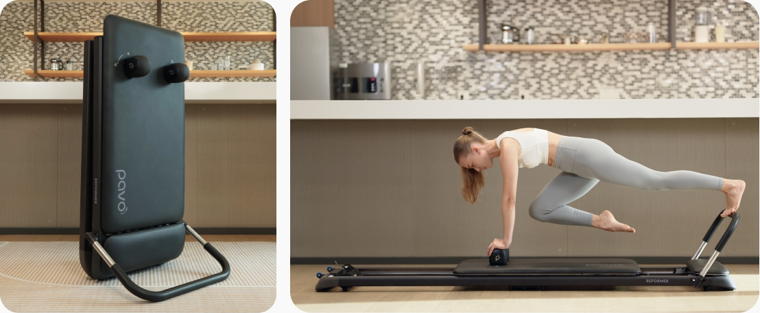Pavo changes that. Foldable, intelligent, and elegantly designed, it brings Pilates training into your home, on your time.
